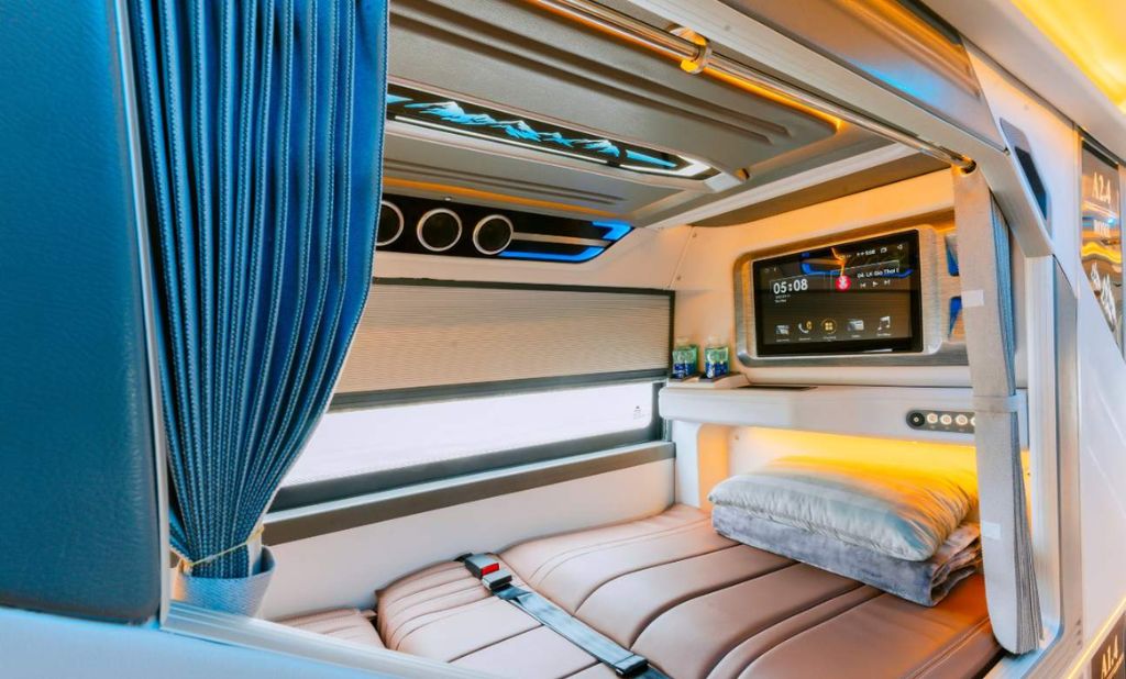 Để nâng tầm trải nghiệm, Thế Anh Travel đã mang đến dòng xe cabin 24 phòng cho khách hàng. Điểm nổi trội của loại xe giường nằm Hải Phòng đi Sapa này nằm ở không gian nghỉ ngơi riêng tư, hiện đại và tiện nghi như một “khách sạn mini di động”. Mỗi cabin là một khoang riêng biệt, có thể ngả phẳng hoàn toàn như giường nằm, đi kèm màn hình giải trí riêng, hệ thống điều hòa riêng biệt, cổng sạc USB, đèn đọc sách cá nhân và rèm che kín đáo.